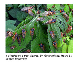 3 Cicada nymph climbing a tree. Source: Dr. Gene Kritsky, Mount St. Joseph University. 4 Emerging cicada adult. Source: Dr. Gene Kritsky, Mount St. Joseph University. 5 Cicada adult and empty shell. Source: Dr. Gene Kritsky, Mount St. Joseph University.